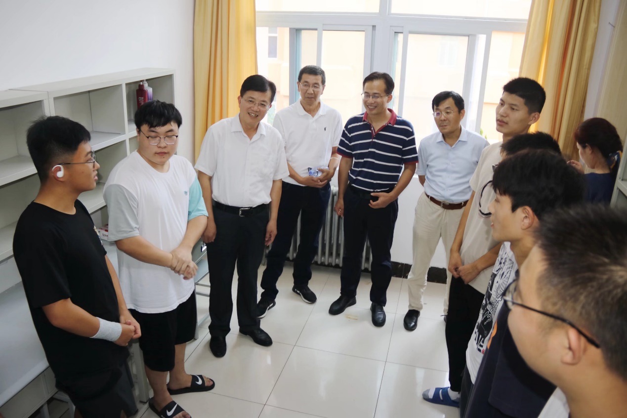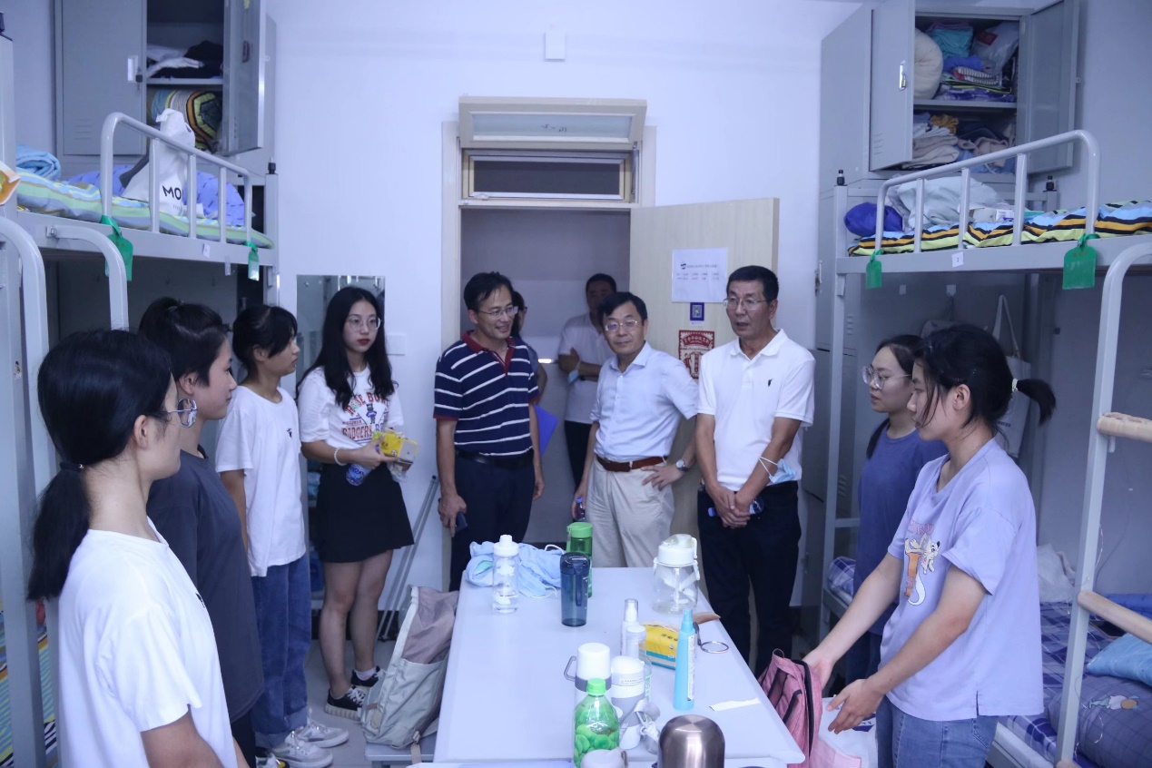随后,公司党委书记赵连章、经理王国明、党委副书记薛希洪和随同学工人员走访了公司其他新生宿舍。