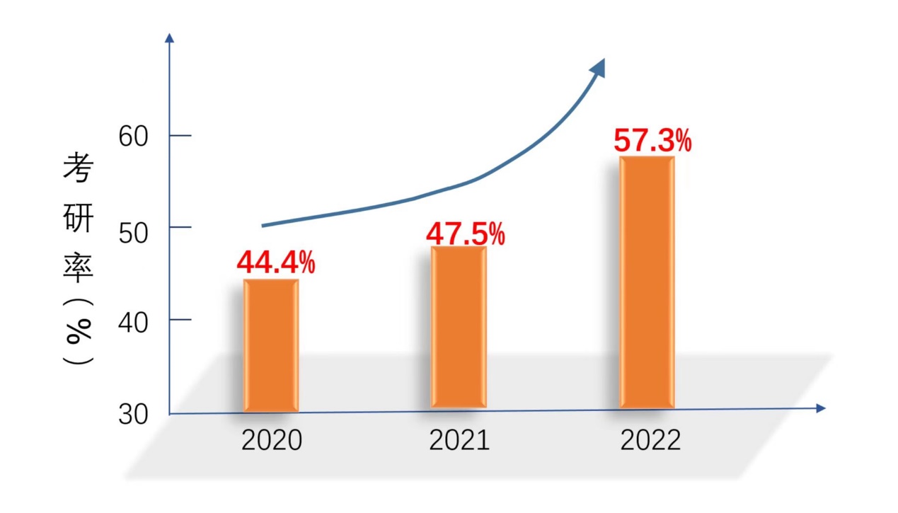 全国硕士研究生招生录取工作已经落下帷幕,MK体育考研率刷新了历史记录。2022届共计220名毕业生,其中126名同学被985、211、双一流等高校录取为硕士研究生,考研率为57.3%,与2020年及2021年相比,录取比例稳步提升。其中化工专业共录取44人,考研率为60.3%,应化专业共录取61人,考研率为57.0%,化学教育专业共录取21人,考研率为52.5%。