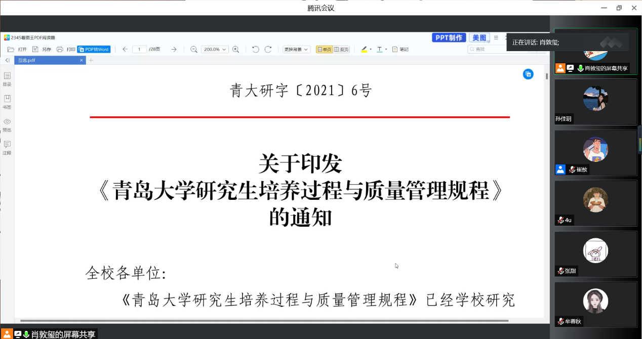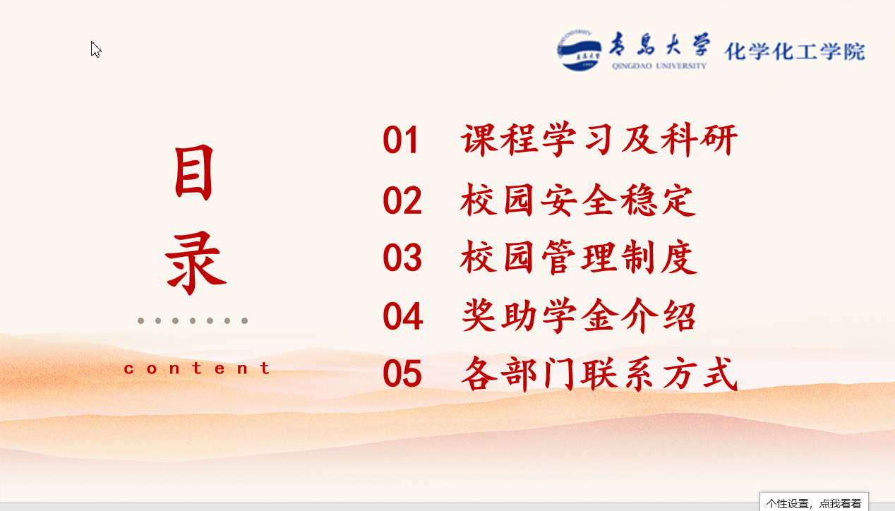最后,肖敦玺老师从课程学习及科研、校园安全稳定、校园管理制度、奖助学金介绍及各部门联系方式五个方面向新同学介绍了公司的日常事务管理工作。