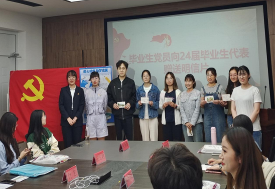 毕业生党员向2024届毕业生代表赠送了亲手书写的明信片,也送出了最美好的祝福。