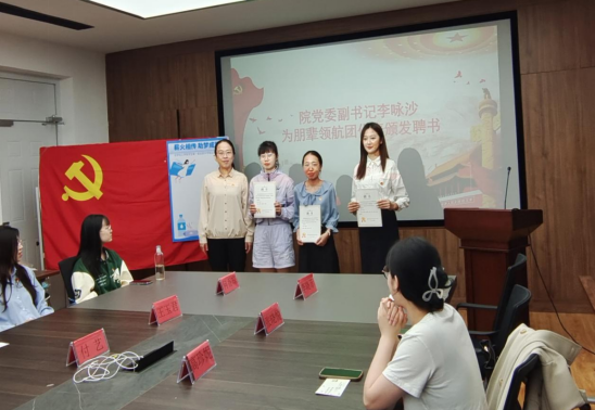 活动伊始,党支部书记孟丽首先总结了支部近一年的工作开展情况以及2023届毕业生党员在科研学习、志愿服务和升学就业等方面的成绩。随后,她宣布公司员工第一党支部“薪火相传 助梦成翼”朋辈领航团正式成立,王依林宣读具体管理章程和实施办法以及朋辈领航团成员名单。