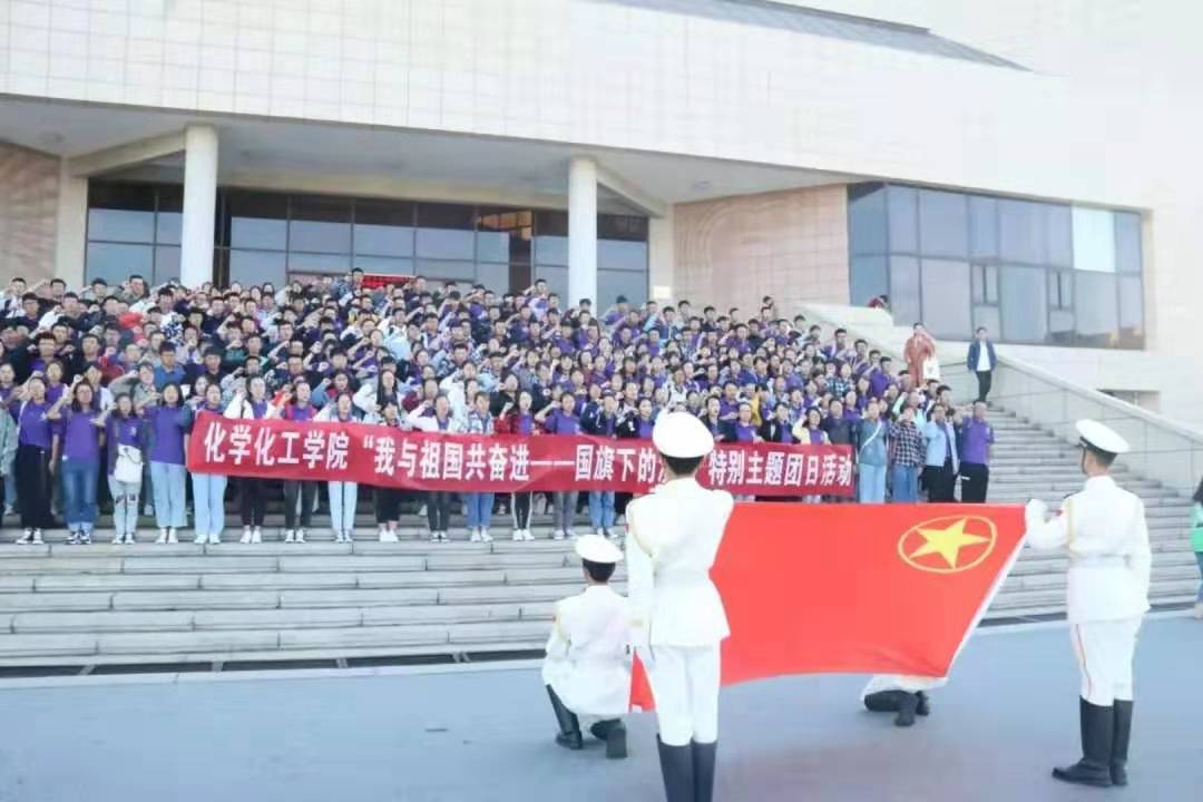 面对鲜艳的五星红旗,全体团员齐唱国歌,为本次活动拉开了序幕。国旗飘扬,国歌雄壮,神圣、庄严的氛围感染着在场的每一个人,点燃了每一个化院学子的爱国激情。升旗仪式结束后,18级团员代表国旗班队员温馨以“我与祖国共奋进”为主题,发表了国旗下演讲。演讲中,她表达了自己对国旗的理解,“一面国旗,书写着丰厚的内涵:那是战争沙场中的勇气,是游子异国思乡的亲情,是国际交往中的尊严,是不屈不挠的奋斗,是对国家富强的期望”,传达了对祖国富强的深深自豪感,以及新时代“和祖国共奋进,共拼搏,共进步”的坚定信念。