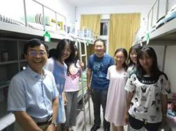 一场秋雨带来了丝丝凉意,但公司老师和学长学姐们给新生送去了温暖。9月13日傍晚7点,党委副书记薛希洪老师,团委书记董永红老师,学工办主任、19级新生辅导员付刚帮老师以及17、18级带班学长学姐前往新生公寓看望19级新生,给中秋节仍在坚持军训的同学们送来了月饼和苹果。
