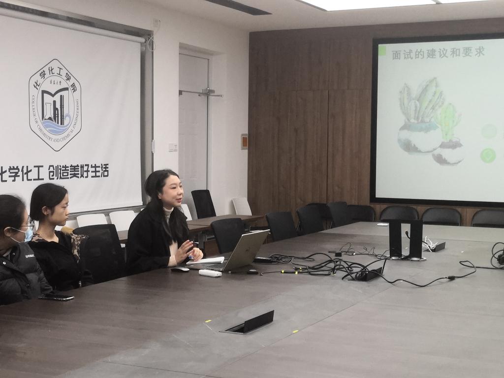 12月25日中午12:30,来自2017级应化专业的张静、于华庆,化学专业的杨海丽在博观楼206会议室,分别就“保研考研那些事”为2018级应化专业1、2班员工详细介绍了“公司选取、专业选取、面试注意事项、大创项目科研经历与考研复试的关联”等问题。