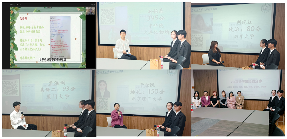 随后,11位优秀员工代表围绕研究生推免的具体流程、报考院校和专业的选择、如何制定复习计划等做了详细分享,以及政治、英语、数学和专业科目的备考策略。滢园11号楼216的六位同学作为优秀考研宿舍代表,通过几个小故事分享了良好的宿舍氛围对于考研的重要性。