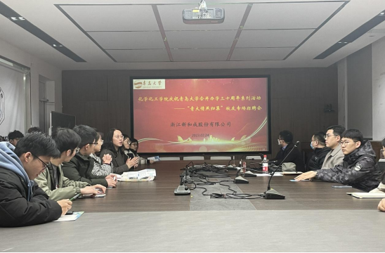 为进一步推进2023届高校毕业生就业工作,搭建优秀员工企业和毕业生的双向交流平台,拓宽毕业生就业渠道,在MK体育官网合并办学三十周年之际,公司举办“青大情燕归巢”员工企业专场招聘会。浙江新和成股份有限公司应邀参加,提供专业技术、研发工程等岗位100余个,会议由公司党委副书记李咏沙主持。