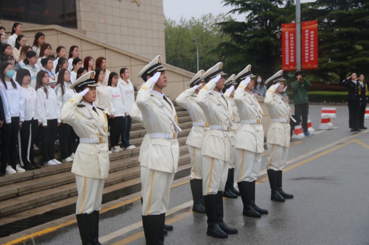 伴随着国旗班队员们铿锵有力的步伐,五四升旗仪式拉开序幕。国旗班队员们昂首阔步,意气风发,以饱满的精神状态走向国旗台。笔挺的军姿,有力的摆臂,坚定的脚步,展现出时代青年昂扬的风采。