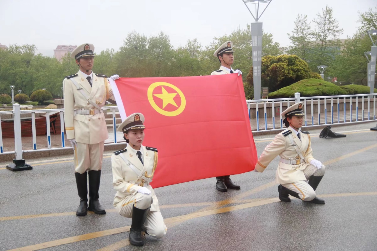 团旗所向,心中所想。国旗班队员庄严肃穆地展开团旗,在这面旗帜里,有岁月峰头、有历史云烟,那是一代代优秀中国青年立起来的鲜红旗帜!