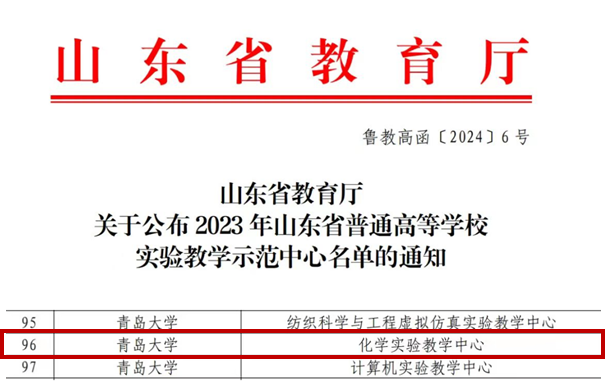 近日,山东省教育厅公布了2023年山东省普通高等公司实验教学示范中心名单,公司化学实验教学中心入选“山东省普通高等公司实验教学示范中心”。